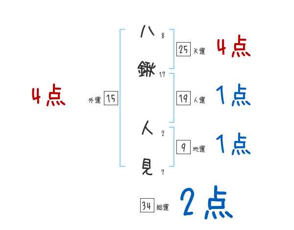 八鍬人見さんの画数の鑑定結果