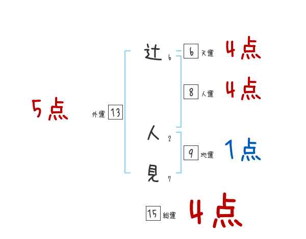 天運![]() | 辻人見さんの天運は6画の4つ星!慎重な努力家で信頼を得る。誠実な精神で向上心に優れる。 家系が持つ宿命的な運勢を表します。祖先から受け継いだ苗字ですので自分の力が及びません。家柄を象徴します。 |
