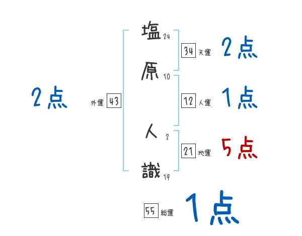 塩原人識さんの画数の鑑定結果