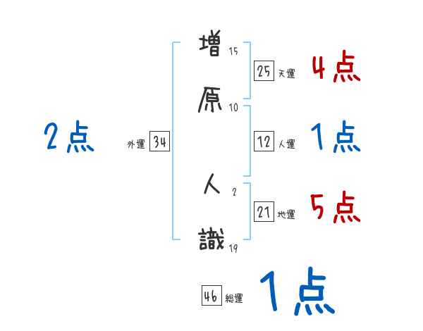 天運![]() | 増原人識さんの天運は25画の4つ星!個性があり才能があふれる。強運の持ち主で発展する。 家系が持つ宿命的な運勢を表します。祖先から受け継いだ苗字ですので自分の力が及びません。家柄を象徴します。 |