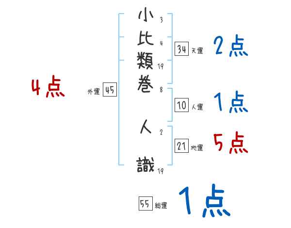 小比類巻人識さんの画数の鑑定結果