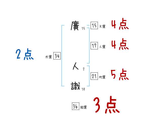 外運![]() | 廣人識さんの外運は34画の2つ星!独創性に優れるが、自尊心が強く災難に注意しましょう。 生活面を象徴する運勢です。外部から受ける影響力を表し、結婚運、家庭運や職場、環境への順応性を表します。 |