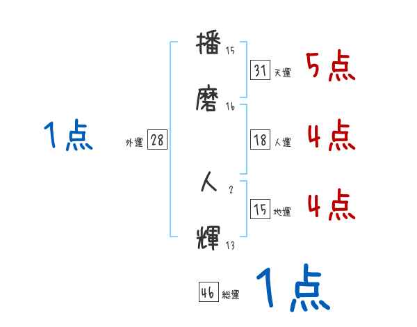 播磨人輝さんの画数の鑑定結果
