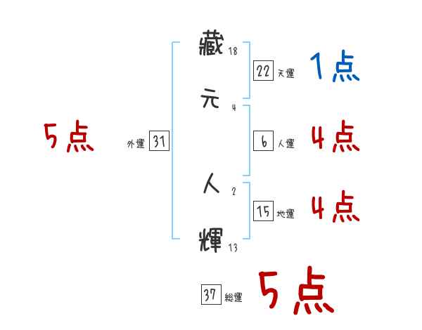 藏元人輝さんの画数の鑑定結果