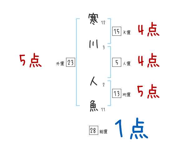 総運![]() | 寒川人魚さんの総運は28画の1つ星!家庭環境に注意。スポーツで活躍できる能力があるかも。 あなたの人生を表す1番重要な運勢です。生涯を通じて影響する総合運となり、主に50歳以降の晩年期に影響を及ぼします。 |