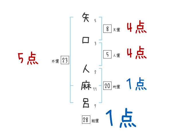 矢口人麻呂さんの画数の鑑定結果