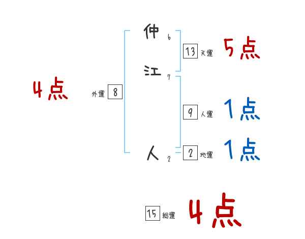 仲江人さんの画数の鑑定結果