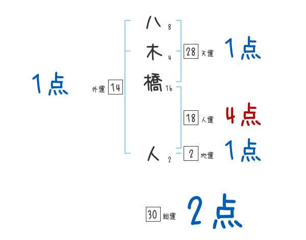 天運![]() | 八木橋人さんの天運は28画の1つ星!家庭環境に注意。スポーツで活躍できる能力があるかも。 家系が持つ宿命的な運勢を表します。祖先から受け継いだ苗字ですので自分の力が及びません。家柄を象徴します。 |