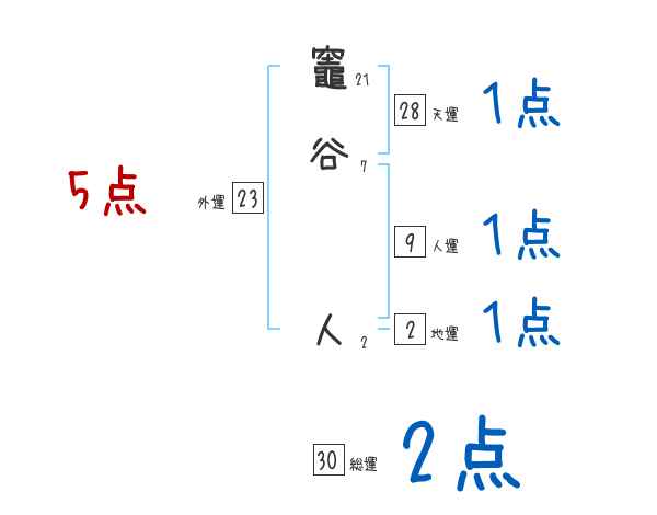 竈谷人さんの画数の鑑定結果