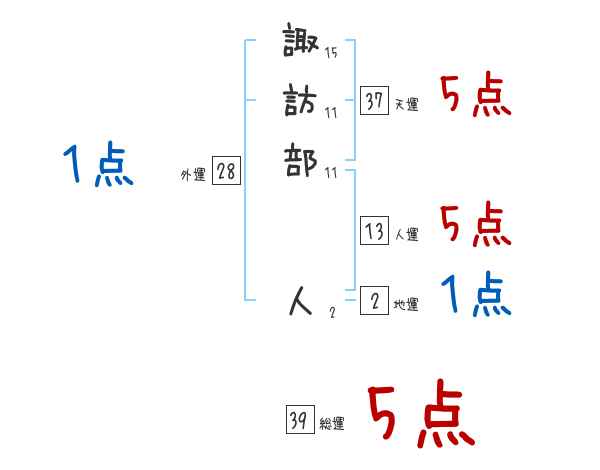 総運![]() | 諏訪部人さんの総運は39画の5つ星!社交性に優れ人望が厚い。人の上に立ち成功する。 あなたの人生を表す1番重要な運勢です。生涯を通じて影響する総合運となり、主に50歳以降の晩年期に影響を及ぼします。 |