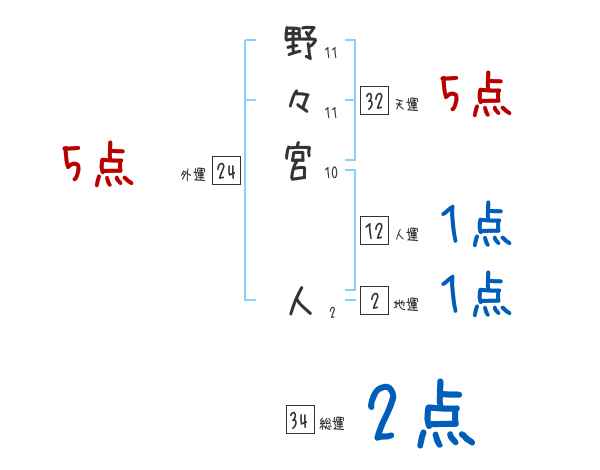 野々宮人さんの画数の鑑定結果