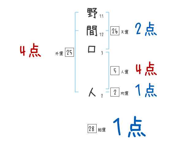 野間口人さんの画数の鑑定結果