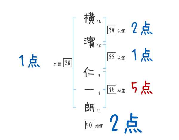 横濱仁一朗さんの画数の鑑定結果