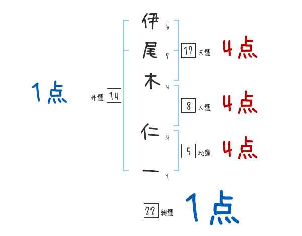 伊尾木仁一さんの画数の鑑定結果