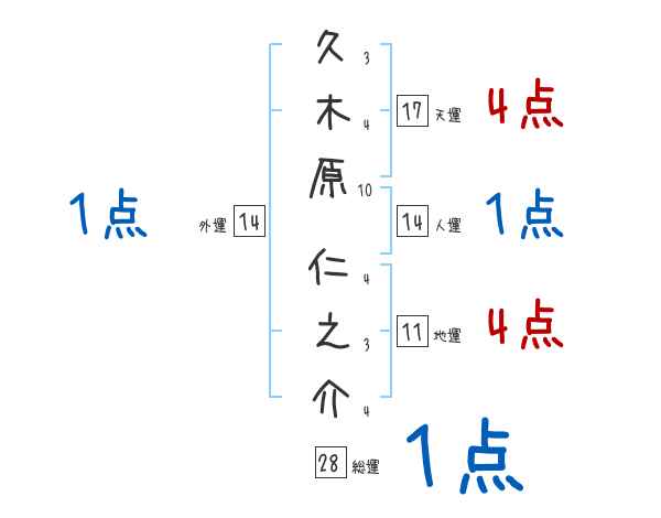 久木原仁之介さんの画数の鑑定結果
