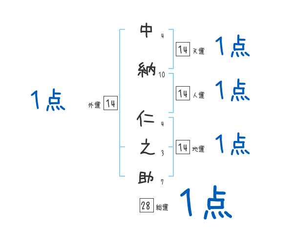 総運![]() | 中納仁之助さんの総運は28画の1つ星!家庭環境に注意。スポーツで活躍できる能力があるかも。 あなたの人生を表す1番重要な運勢です。生涯を通じて影響する総合運となり、主に50歳以降の晩年期に影響を及ぼします。 |