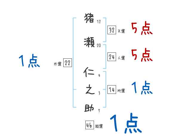 猪瀬仁之助さんの画数の鑑定結果