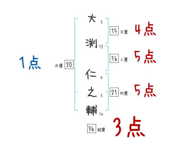 大渕仁之輔さんの画数の鑑定結果