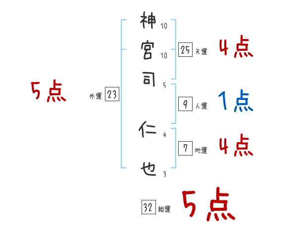 神宮司仁也さんの画数の鑑定結果