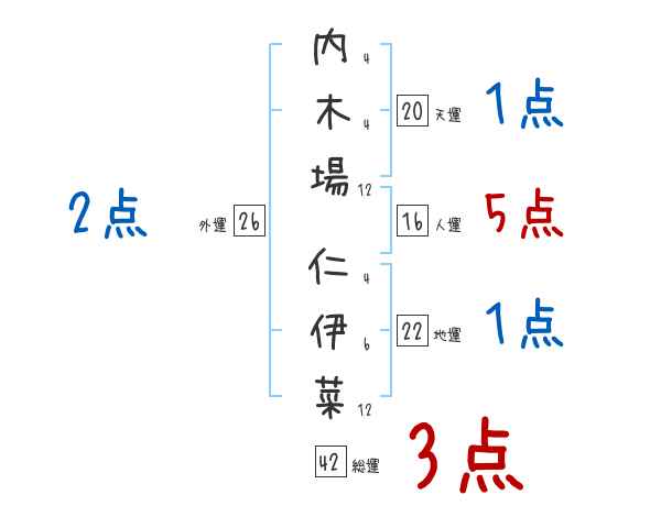 内木場仁伊菜さんの画数の鑑定結果
