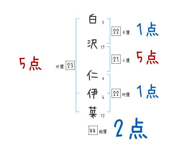 白沢仁伊菜さんの画数の鑑定結果