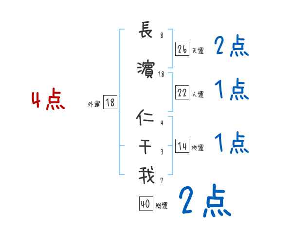 長濵仁千我さんの画数の鑑定結果