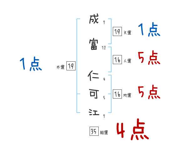 成富仁可江さんの画数の鑑定結果