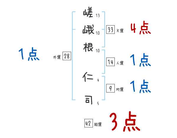 嵯峨根仁司さんの画数の鑑定結果