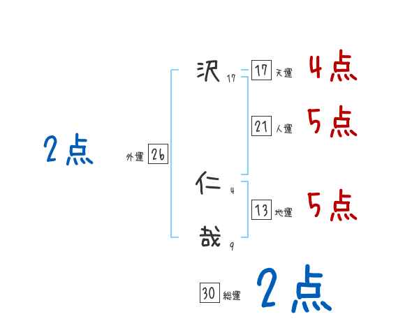沢仁哉さんの画数の鑑定結果
