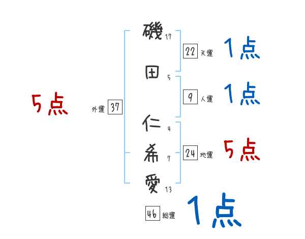 磯田仁希愛さんの画数の鑑定結果