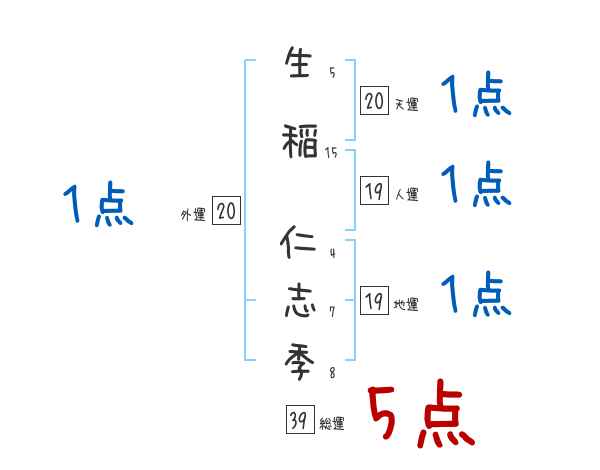 家系が持つ宿命的な運勢を表します。祖先から受け継いだ苗字ですので自分の力が及びません。家柄を象徴します。