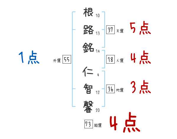 根路銘仁智馨さんの画数の鑑定結果