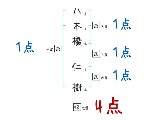 八木橋仁樹さんの画数の鑑定結果