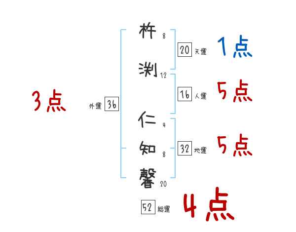 杵渕仁知馨さんの画数の鑑定結果