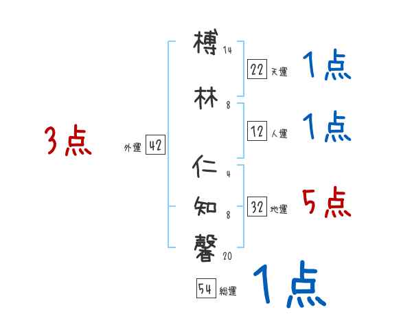 総運![]() | 榑林仁知馨さんの総運は54画の1つ星!トラブルが多いかも。周りをよく見て協調して過ごしましょう。 あなたの人生を表す1番重要な運勢です。生涯を通じて影響する総合運となり、主に50歳以降の晩年期に影響を及ぼします。 |