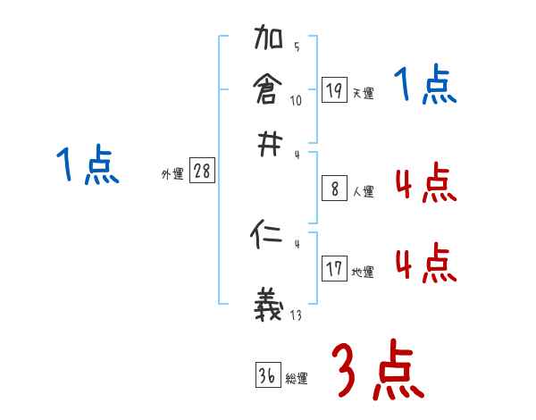 加倉井仁義さんの画数の鑑定結果