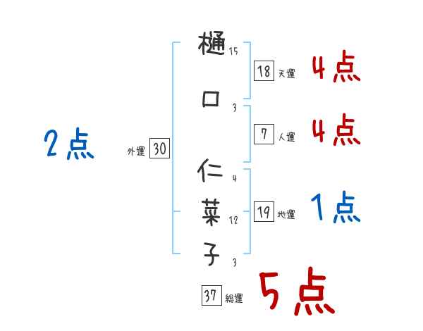 樋口仁菜子さんの画数の鑑定結果