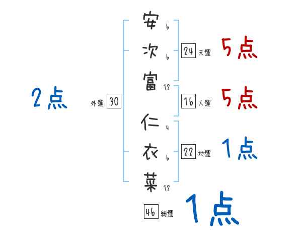 安次富仁衣菜さんの画数の鑑定結果