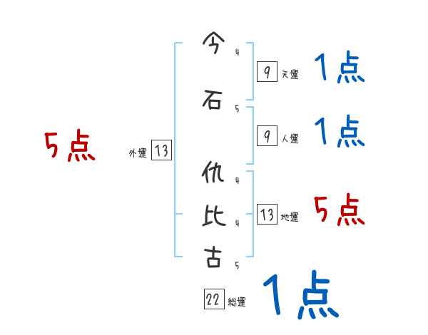 外運![]() | 今石仇比古さんの外運は13画の5つ星!才能に恵まれ人気がある。名声を手に入れる。円満な人生。 生活面を象徴する運勢です。外部から受ける影響力を表し、結婚運、家庭運や職場、環境への順応性を表します。 |