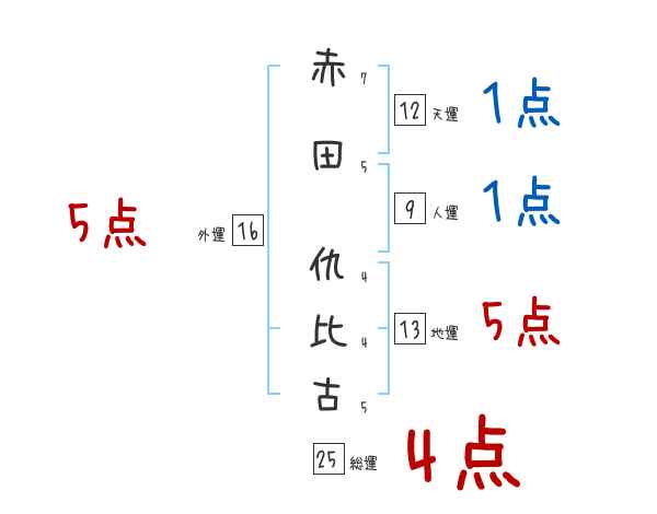 赤田仇比古さんの画数の鑑定結果