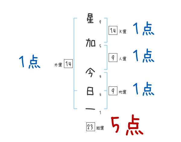 天運![]() | 星加今日一さんの天運は14画の1つ星!人に対して優しいがストレスを溜め込みがち。人間関係のトラブルを避けるよう気をつけましょう。 家系が持つ宿命的な運勢を表します。祖先から受け継いだ苗字ですので自分の力が及びません。家柄を象徴します。 |