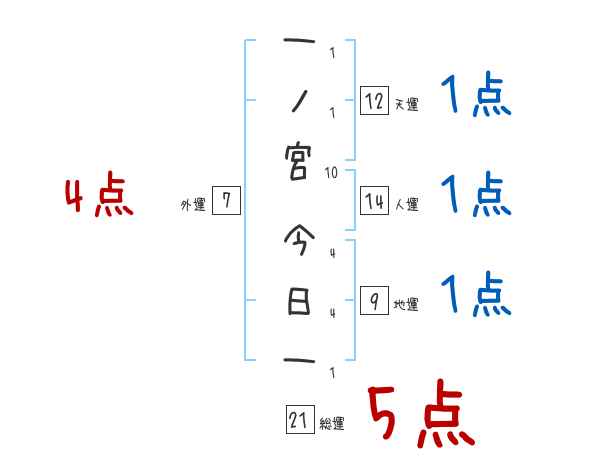 家系が持つ宿命的な運勢を表します。祖先から受け継いだ苗字ですので自分の力が及びません。家柄を象徴します。