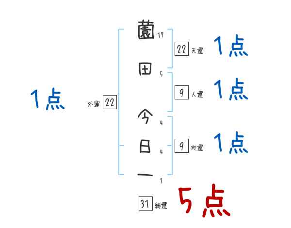薗田今日一さんの画数の鑑定結果