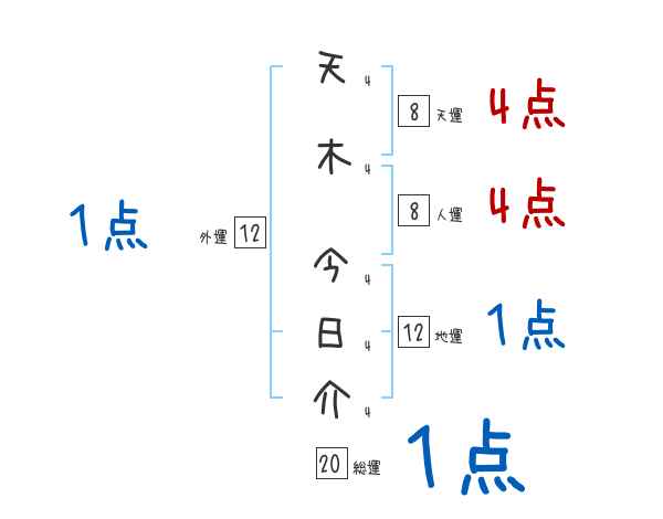 天木今日介さんの画数の鑑定結果