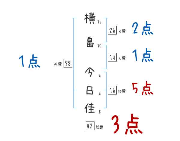 横畠今日佳さんの画数の鑑定結果