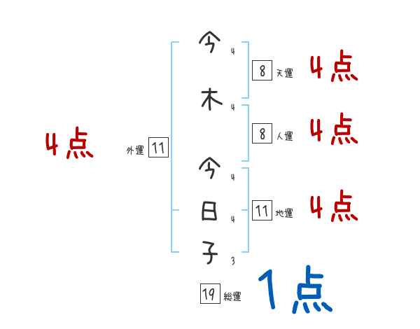 今木今日子さんの画数の鑑定結果