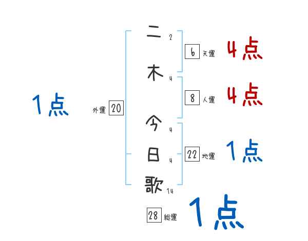 天運![]() | 二木今日歌さんの天運は6画の4つ星!慎重な努力家で信頼を得る。誠実な精神で向上心に優れる。 家系が持つ宿命的な運勢を表します。祖先から受け継いだ苗字ですので自分の力が及びません。家柄を象徴します。 |
