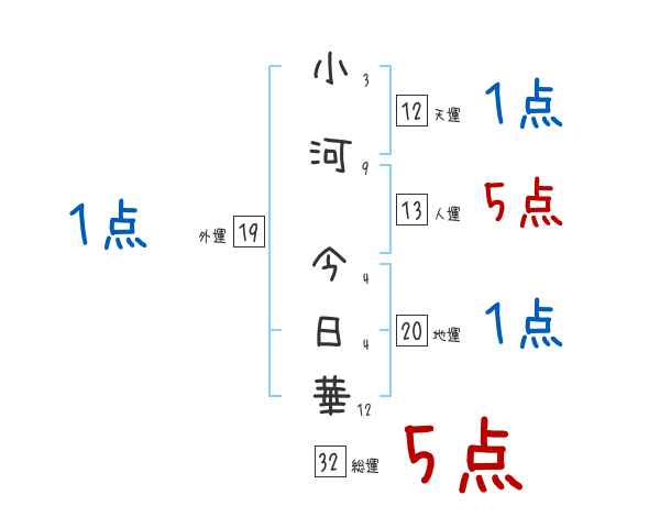 総運![]() | 小河今日華さんの総運は32画の5つ星!柔軟性があり成功する。チャンスが多く金運が良い。 あなたの人生を表す1番重要な運勢です。生涯を通じて影響する総合運となり、主に50歳以降の晩年期に影響を及ぼします。 |