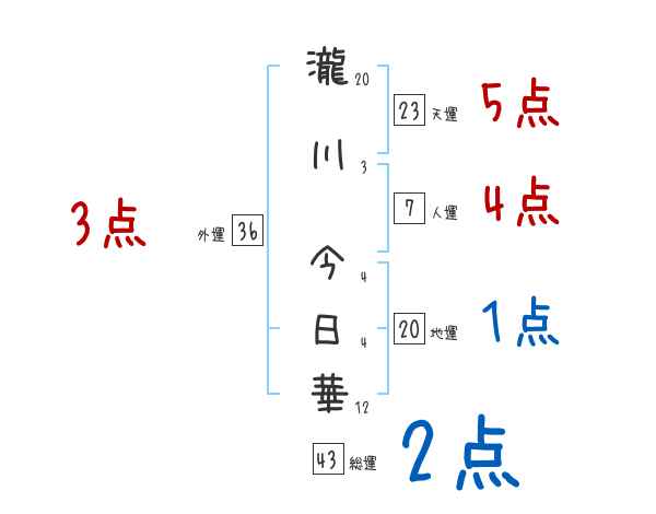 瀧川今日華さんの画数の鑑定結果
