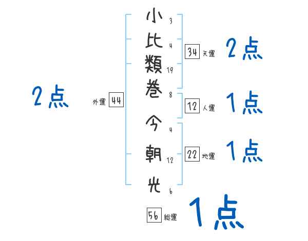 小比類巻今朝光さんの画数の鑑定結果